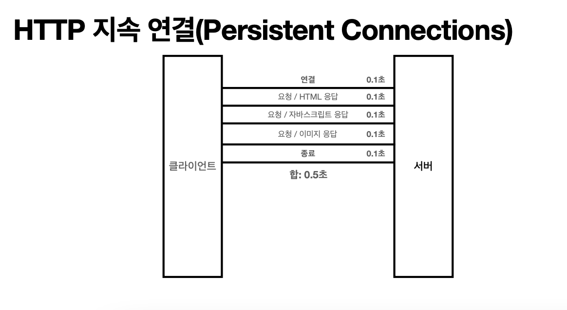 HTTP : 기본이 연결을 유지하지 않는 모델(stateless)(요청/응답 후 연결 종료) → TCP/IP 연결을 새로 맺어야 시간 늘어남 → Keep-Alive(지속연결) 기능으로 한 번 연결 후 연결 유지 가능