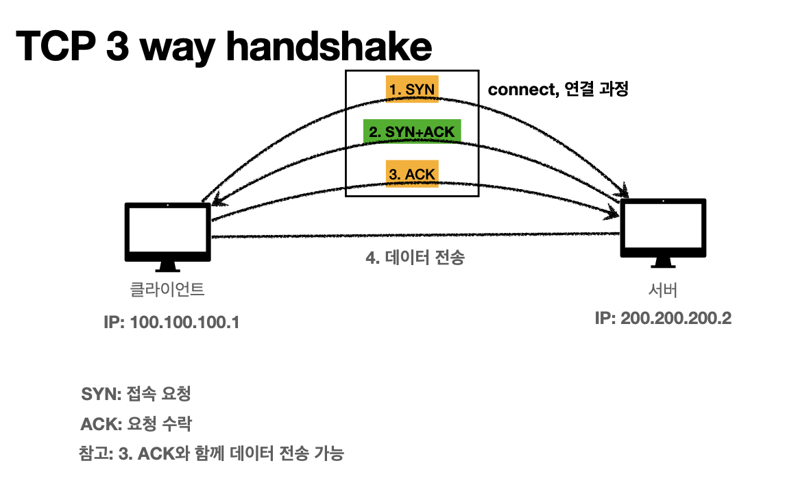 (3-way handshake 를 통해 서버와 연결을 확인하고 데이터 전달함)