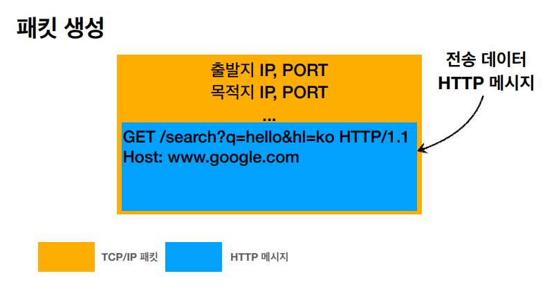 4. TCP/IP 계층에서는 이전의 웹 브라우저에서 전달 받은 데이터를 기반으로 TCP/IP 패킷을 생성